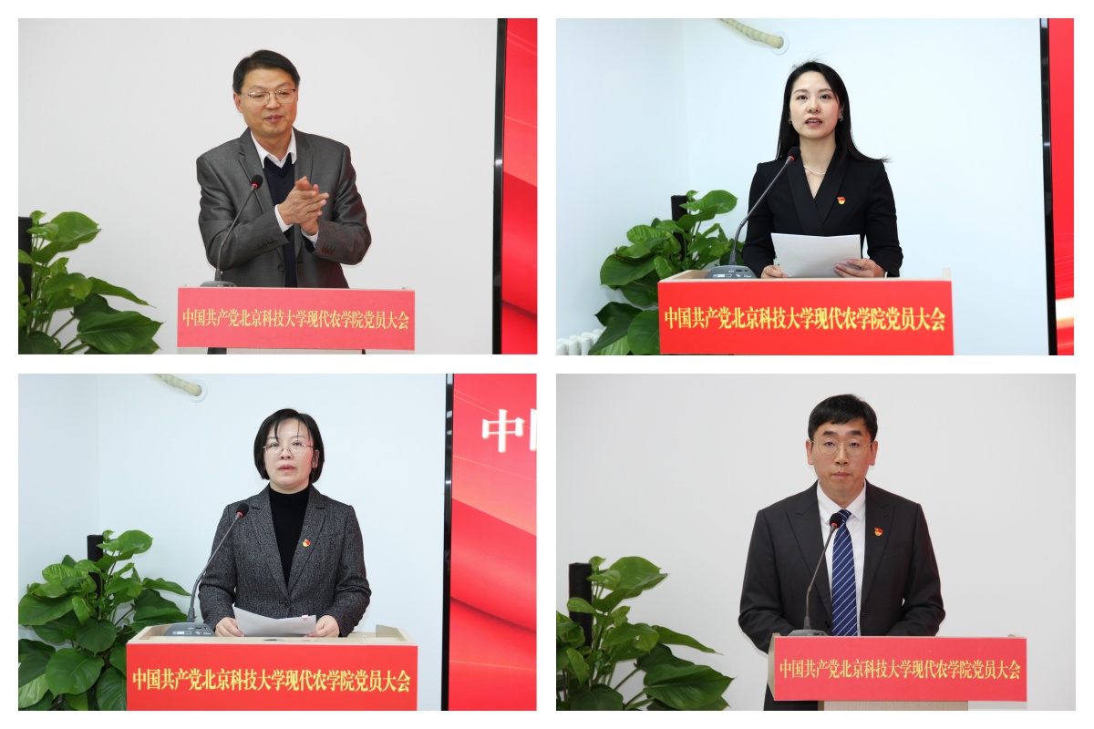 学院党委书记肖晓玲代表学院党委作了题为《凝心聚力 争创一流 奋力谱写新农科建设开局之笔》的工作报告。报告全面回顾了学院党委在党建和思想政治工作、学科建设、人才培养、科研创新、师资队伍建设等方面取得的成就,深入分析了当前面临的发展机遇与历史挑战。报告明确提出,未来一个时期学院党委将坚持以习近平新时代中国特色社会主义思想为指导,锚定“三步走”发展战略,传承学校“求实鼎新”校训精神,坚持党建引领,坚持交叉融合,坚持引育并举,坚持多元创新,坚持对外开放,在构建北科特色新农科体系、打造国内一流涉农学科的征程中踔厉奋发、勇毅前行!