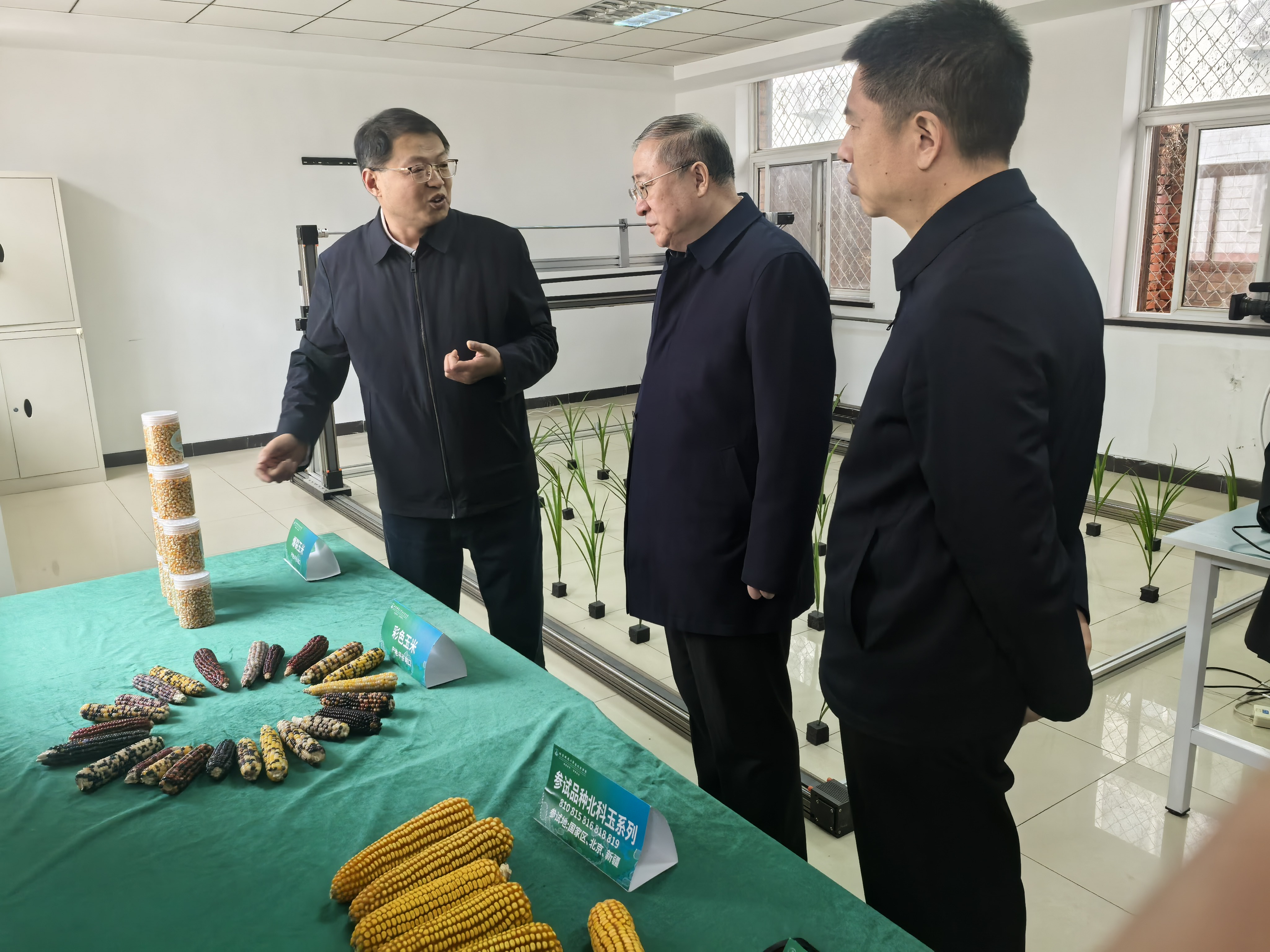 参观过程中,万向元详细汇报并重点展示了研究院在玉米多控不育技术体系、“北科玉1”系列品种选育、爆裂玉米及彩色玉米种质资源开发等领域的研究进展与应用成果。调研团对研究院在玉米种质创新与分子育种方向取得的突破进展给予充分肯定和高度评价。